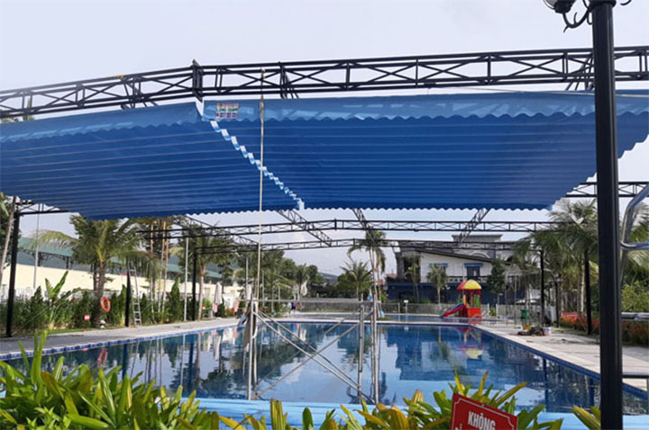 - Tại các hồ bơi, mái xếp lượn sóng là sự lựa chọn không thể thích hợp hơn