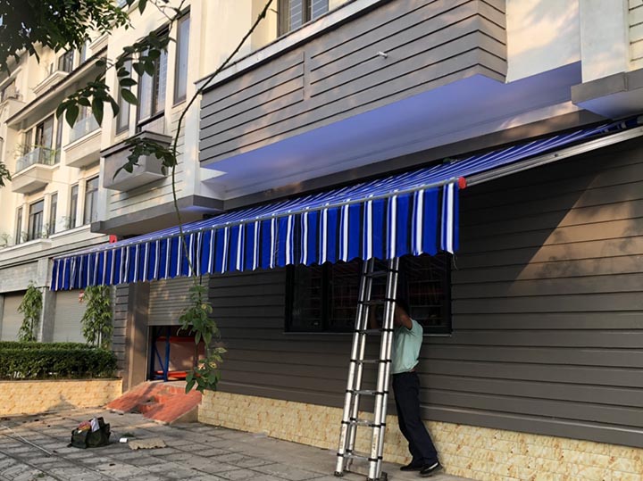 Nếu mặt bằng thoáng, không bị vướng (cột điện, biển quảng cáo…) thì quý khách chỉ cần đọc kích thước chiều ngang mặt tiền và độ dài muốn mái đua ra là chúng tôi sẽ chuẩn bị được đầy đủ linh kiện và may bạt cho quý khách để về tự lắp nhé!