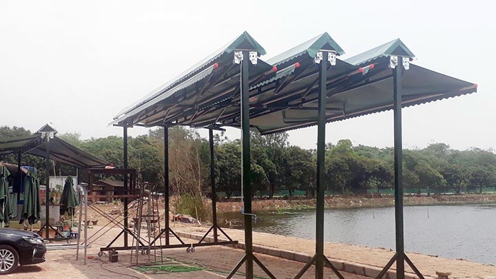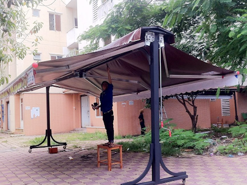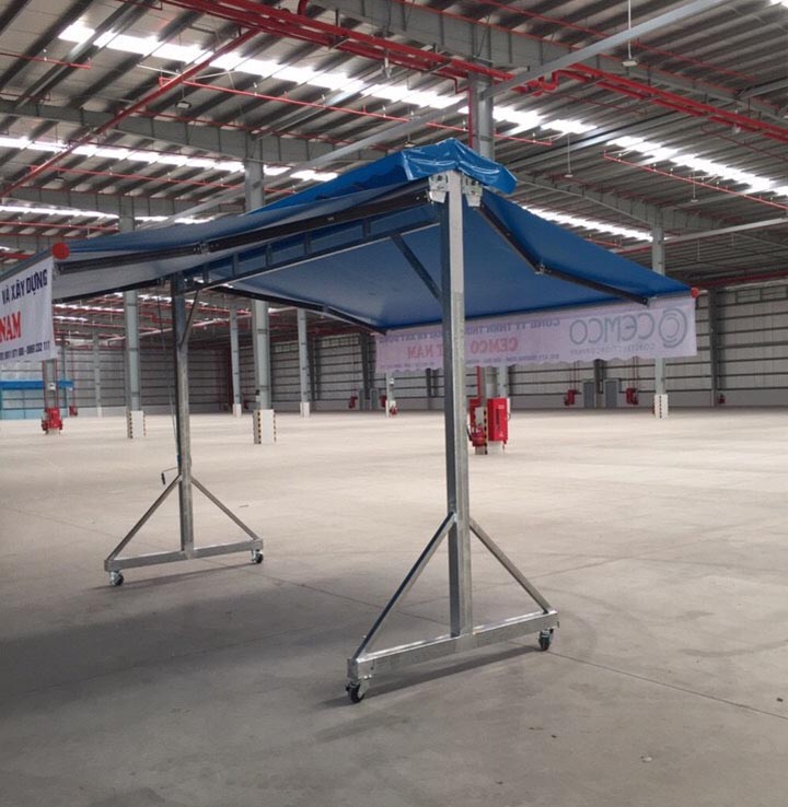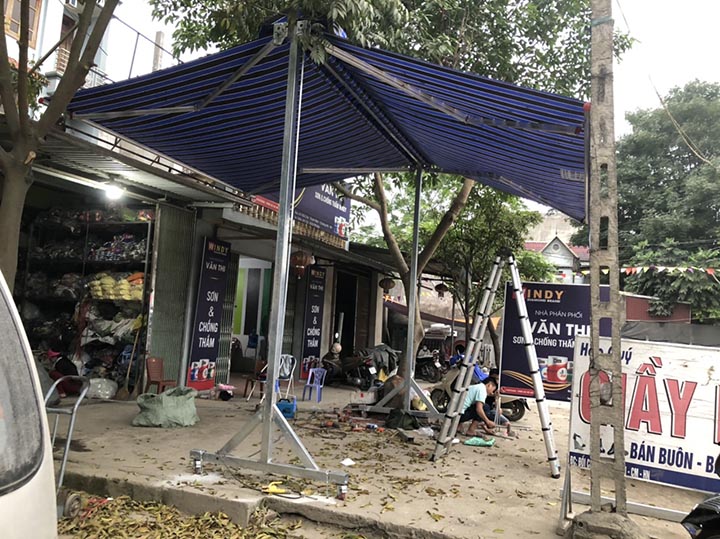 Mời quý khách hàng tham khảo một số hình ảnh sản phẩm mái hiên chữ a, lều bạt bán hàng có bánh xe đẩy: