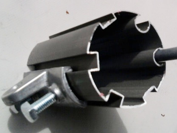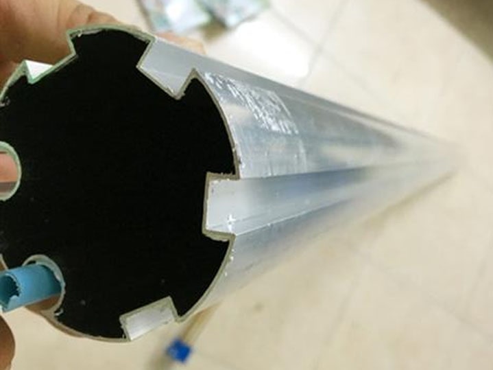 Ống nhôm được thiết kế 2 lỗ tròn để luồn bạt, và các rãnh vuông có tác dùng chịu lực, nhằm tăng cường độ chắc chắn cho mái hiên
